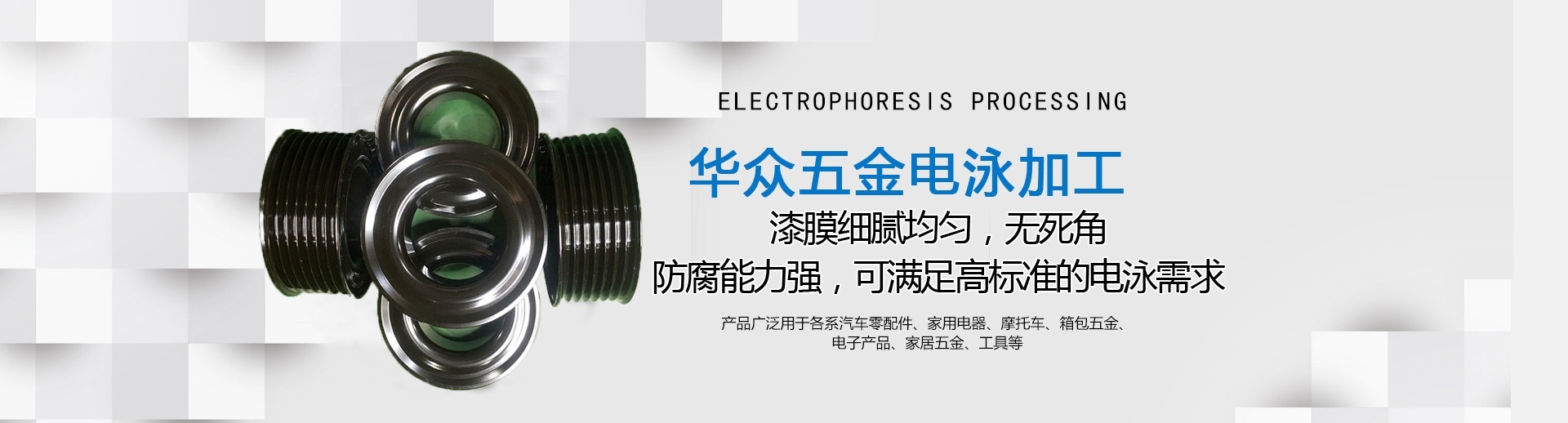 About us龍巖市華眾機(jī)械有限公司成立于2010年12月,新廠位于福建省龍巖市新羅區(qū)東寶工業(yè)集中區(qū),注冊資本3000萬元,占地27000平方米,員工60多人,是一家專業(yè)從事電泳、磷化、數(shù)車等加工業(yè)務(wù)的制造型企業(yè),是國家高新技術(shù)企業(yè),擁有三十多項實用新型專利。 我司的電泳技術(shù)和品質(zhì)在華南地區(qū)深受客戶信賴。公司擁有20年以上經(jīng)驗豐富的技術(shù)人員和管理人員,擁有全自動電泳生產(chǎn)設(shè)備,所采用原料均為美國、德國進(jìn)口,產(chǎn)品品質(zhì)能達(dá)到國際電泳涂裝標(biāo)準(zhǔn)要求,廣泛應(yīng)用于汽車零部件、機(jī)械配件、電子產(chǎn)品、工藝品等一系列金屬制品?,F(xiàn)配套服務(wù)于比亞迪、吉利、通用、福特、大眾、豐田、現(xiàn)代等全球知名汽車公司。 2018年8月公司通過NSF-ISR管理評審,獲得IATF16949質(zhì)量管理體系證書。